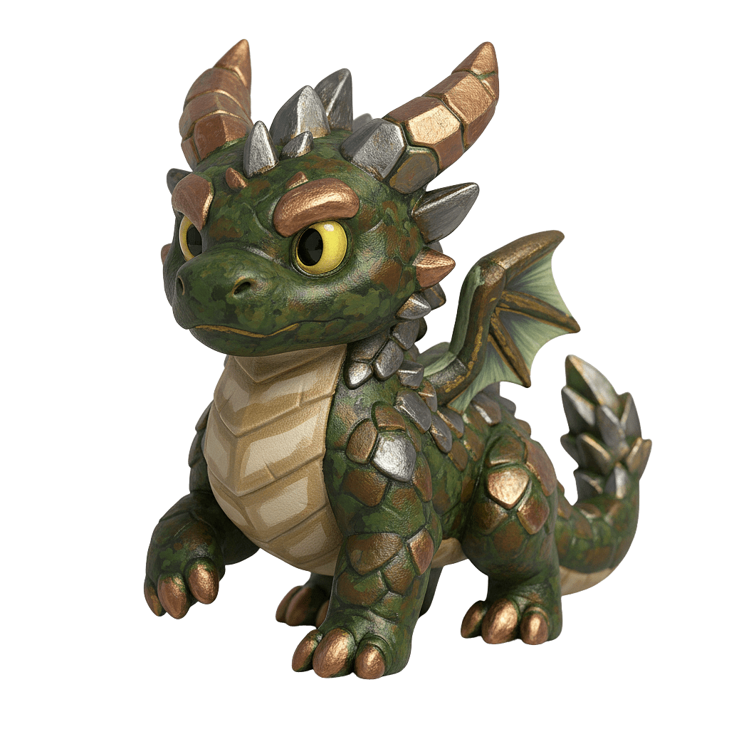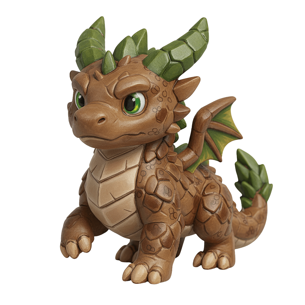 Ses Ă©cailles sculptĂ©es et son allure de petit protecteur Ă©voquent les montagnes anciennes, les forĂȘts profondes et les crĂ©atures lĂ©gendaires qui veillent sur la nature.