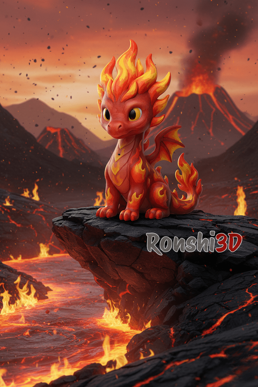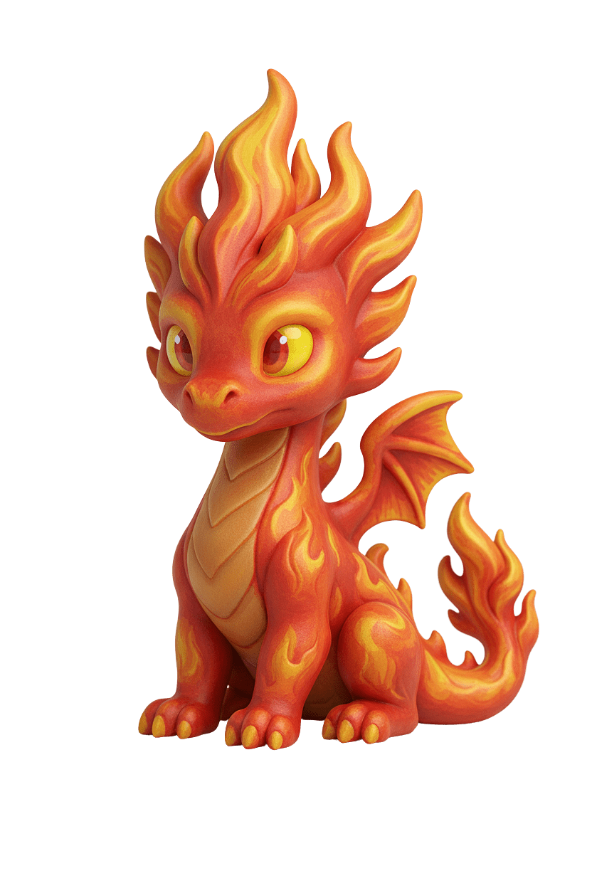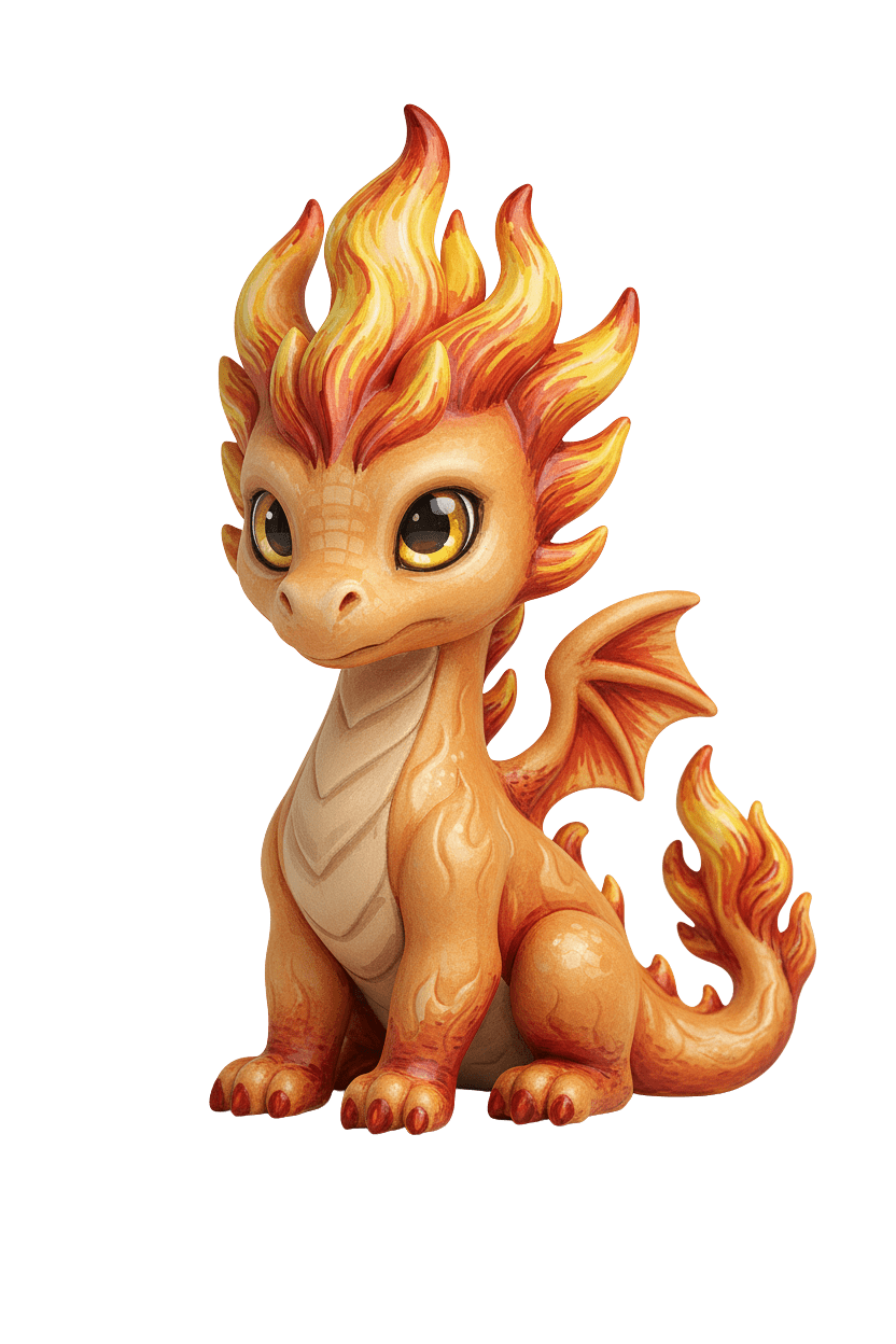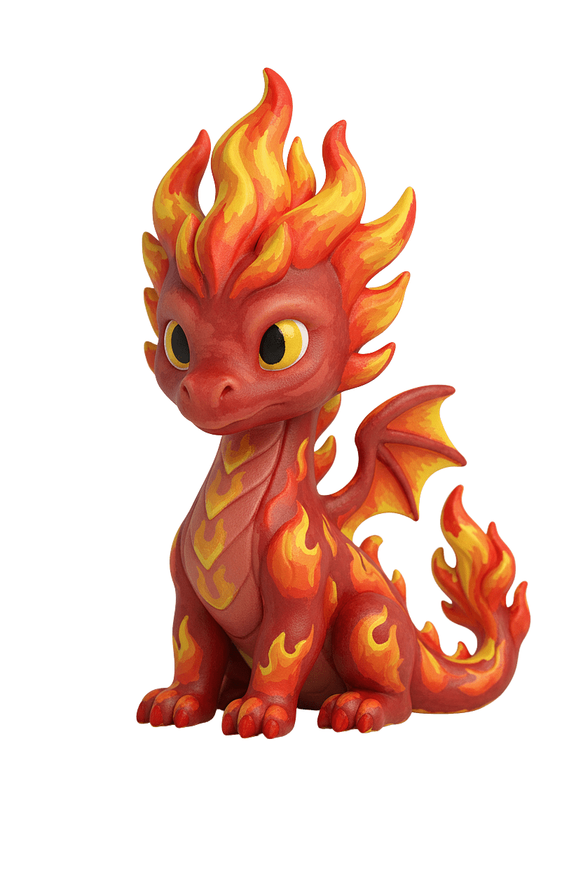 Sa crinière sculptée en forme de flammes et sa queue ardente lui donnent une allure à la fois mignonne et puissante. Assis fièrement, il semble prêt à protéger ton royaume… ou à devenir ton nouveau compagnon créatif préféré.